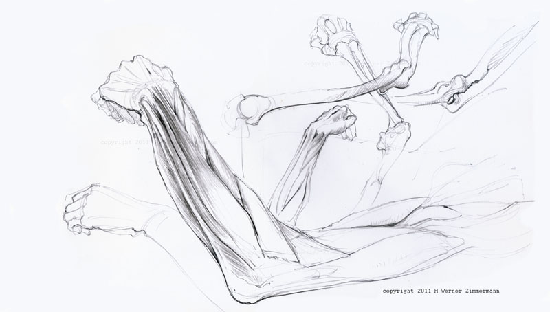 I threw some tracing paper over the study and began to search out the skeleton, when it struck me I hadn’t been up to the Anatomy Labs at the University in a while. So that is where I found myself a few minutes later. Unfortunately for me and studying the back, Students from Humber were there working on the cadavers so I moved into a corner, was provided with some arms and spent a few happy hours studying and sketching.