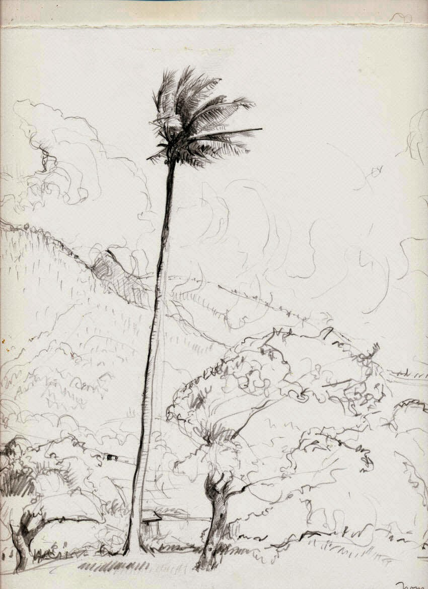 In the meantime because of the freezing weather we’re feeling this week (-31C in the wind) I dug out some sketches I did while on a trip to the islands of Antigua & Monserrat in ’96.