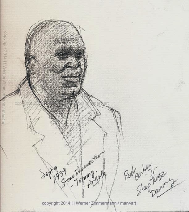 SlapJazz Danny was in Toronto from his home in San Diego to perform at the Percussion Festival at Harbourfront.  Regrettably  I missed his performance, but when we bumped into him outside he graciously agreed to sit for a few minutes to allow us to draw him.